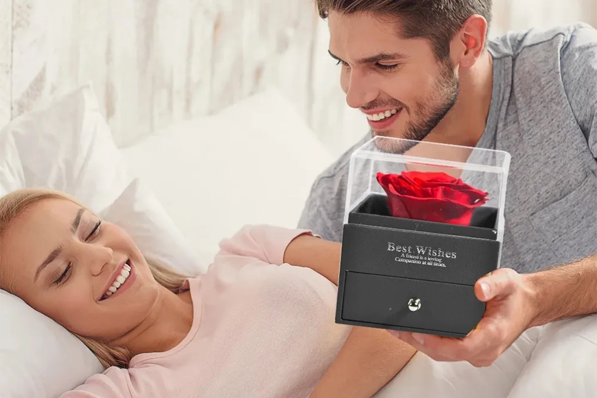 2025 Valentines Day Gift Ideas Real Natural Eternal Rose Flower Preserved Rose Acrylic Jewelry Box Gifts for Women Girls